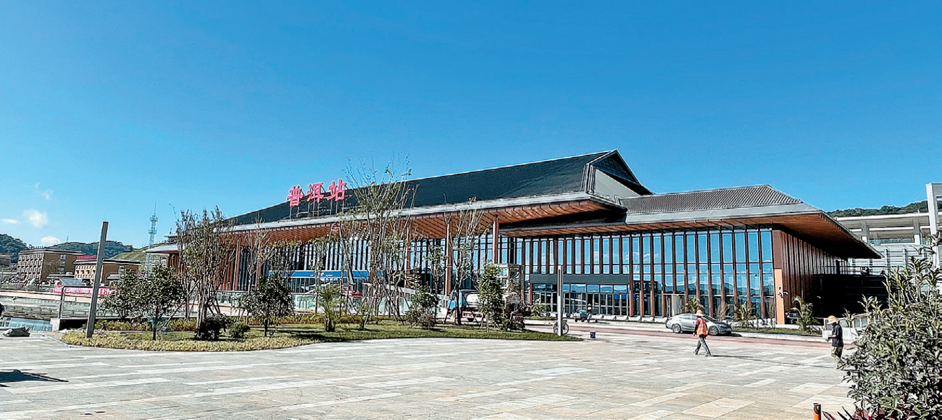 普洱站设计理念以“茶马古道,云滇驿站”为主题,提炼当地特有的建筑特点,运用现代建筑语言塑造了传承且具有新意的建筑形象。设计源自我国古代中西南地区商贸文化,体现了面向世界,促进西南发展的理念。