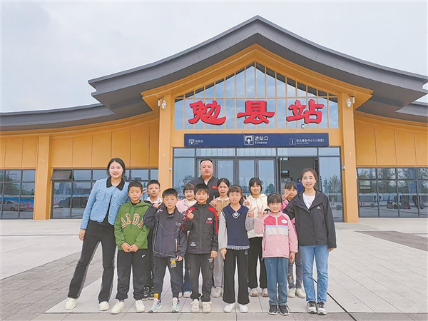 图为西安局集团公司支教老师带领学生到铁路车站参观研学。贾智炜 摄