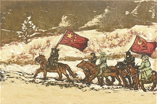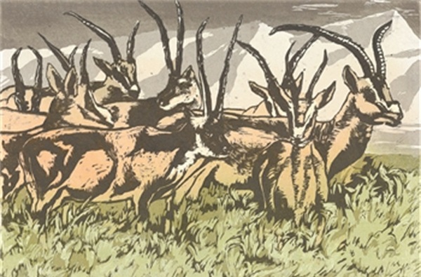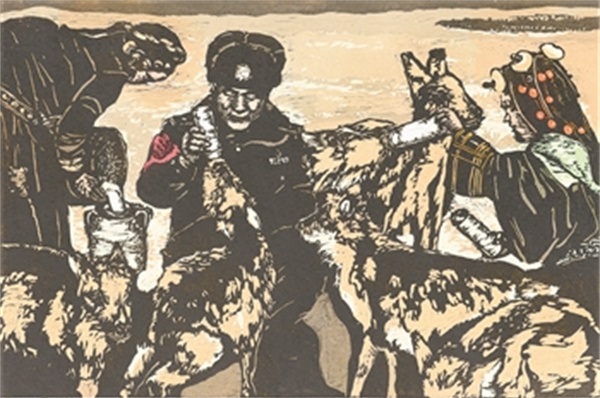 套色版画作品《可可西里的故事》,是根据铁路民警的真实故事创作而成的。作品用四联形式,描绘了铁路民警呼吁保护珍稀野生动物藏羚羊的故事。沿着青藏铁路进入美丽的青藏高原,铁路民警带领志愿者深入可可西里自然保护区,喂养受伤的幼小的藏羚羊,使它们得到呵护与照顾,让这些珍稀野生动物受到更多关注,在广阔的高原繁衍生长。陈娟 制作
