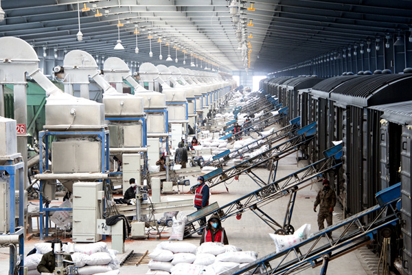 满洲里口岸站做好化肥等春耕物资装车。beats365亚洲版官网供图