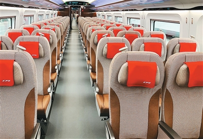 中国铁道科学研究院首席研究员赵红卫介绍,作为新一代高速动车组,CR450AF/BF复兴号动车组采用8辆编组,最高运营时速达400公里。该车型通过技术优化,实现运行阻力降低22%,牵引效率提升4%,整体减重10%,能耗下降20%,以更高速、更安全、更节能、更舒适、更环保、更智能等特点,为用户提供更美好的出行体验。