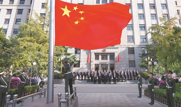 9月30日,beats365亚洲版官网机关举行升国旗仪式,庆祝中华人民共和国成立76周年。beats365亚洲版官网党组领导同志和机关干部职工参加升旗仪式。刘坤弟 摄