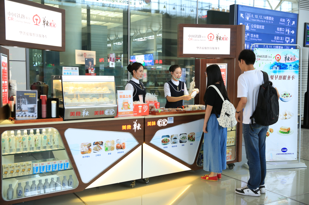 为解决高铁车站中早餐品种稀缺问题、上海局集团公司从便民利民出发,研发适用于高铁车站的新型早餐车,在上海局管内部分车站,每天早上为旅客提供品种丰富的产品,价位亲民。